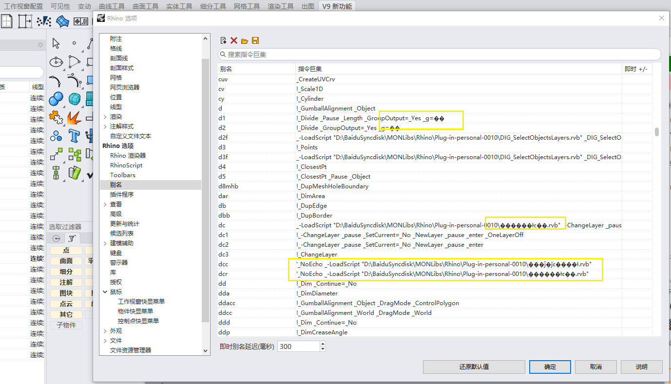 请在 Rhino WIP 指令行执行 SystemInfo, 然后把弹出内容全部拷贝后回帖. 另外请提供一下你导入的别名文件, 谢谢.
